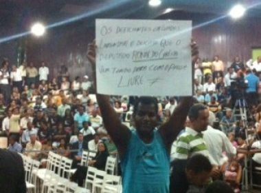 A sessão plenária itinerante da Assembleia Legislativa da Bahia (AL-BA), realizada nesta quinta-feira (21), no auditório do Centro Cultural Adonias Filho, em Itabuna, foi marcada por protestos e tulmutos entre os participantes e os parlamentares. De acordo com o site Pimenta na Muqueca, o presidente da Casa, Marcelo Nilo (PDT), chegou a ameaçar encerrar o evento por conta de insistentes vaias proferidas pela plateia. Segundo o portal, um grupo da Associação Grapiúna dos Paraplégicos (AGP) presente no encontro dos políticos baianos com a população itabunense, reivindicou a aprovação do Projeto de Lei que assegura a gratuidade no transporte coletivo intermunicipal. Desta vez, o principal alvo dos manifestantes foi o deputado Ronaldo Carleto (PP), que foi acusado de defender os interesses dos empresários do setor de transporte no estado. Depois das ameaças e da diminuição das vaias e dos protestos, a presidência decidiu prosseguir com a reunião.